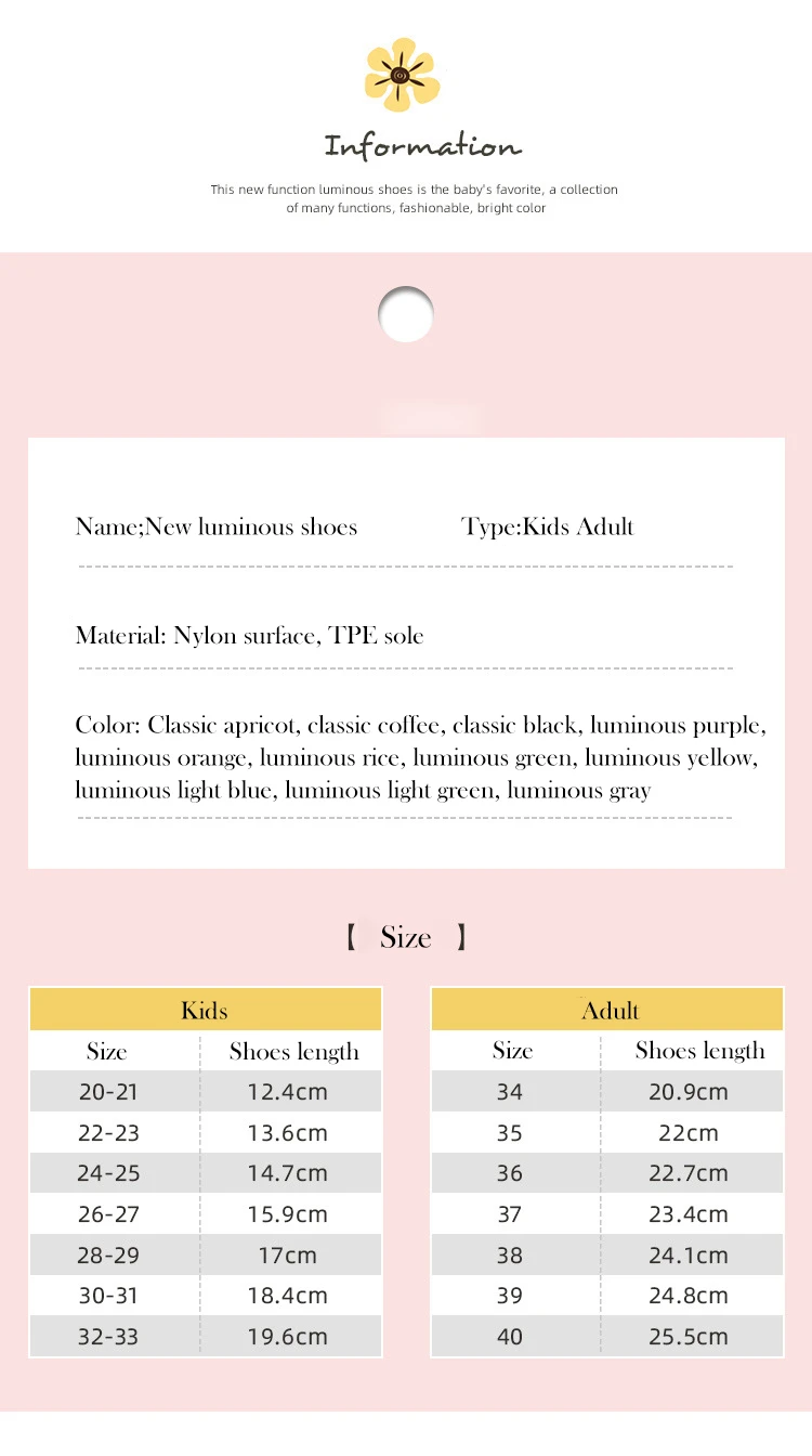 Kids 21-33, Adult-34-42Note: the size is Asian size,if want loose ,pls order 1-2 bigger size than you need .hope understanding!