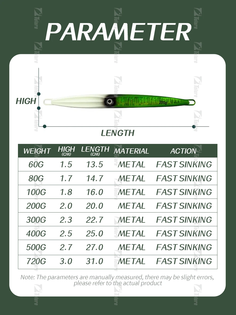 TL 60g80g100g200g300g400g500g720g Deep Sea Metal Jig Fishing Jigbait Spoon Baits