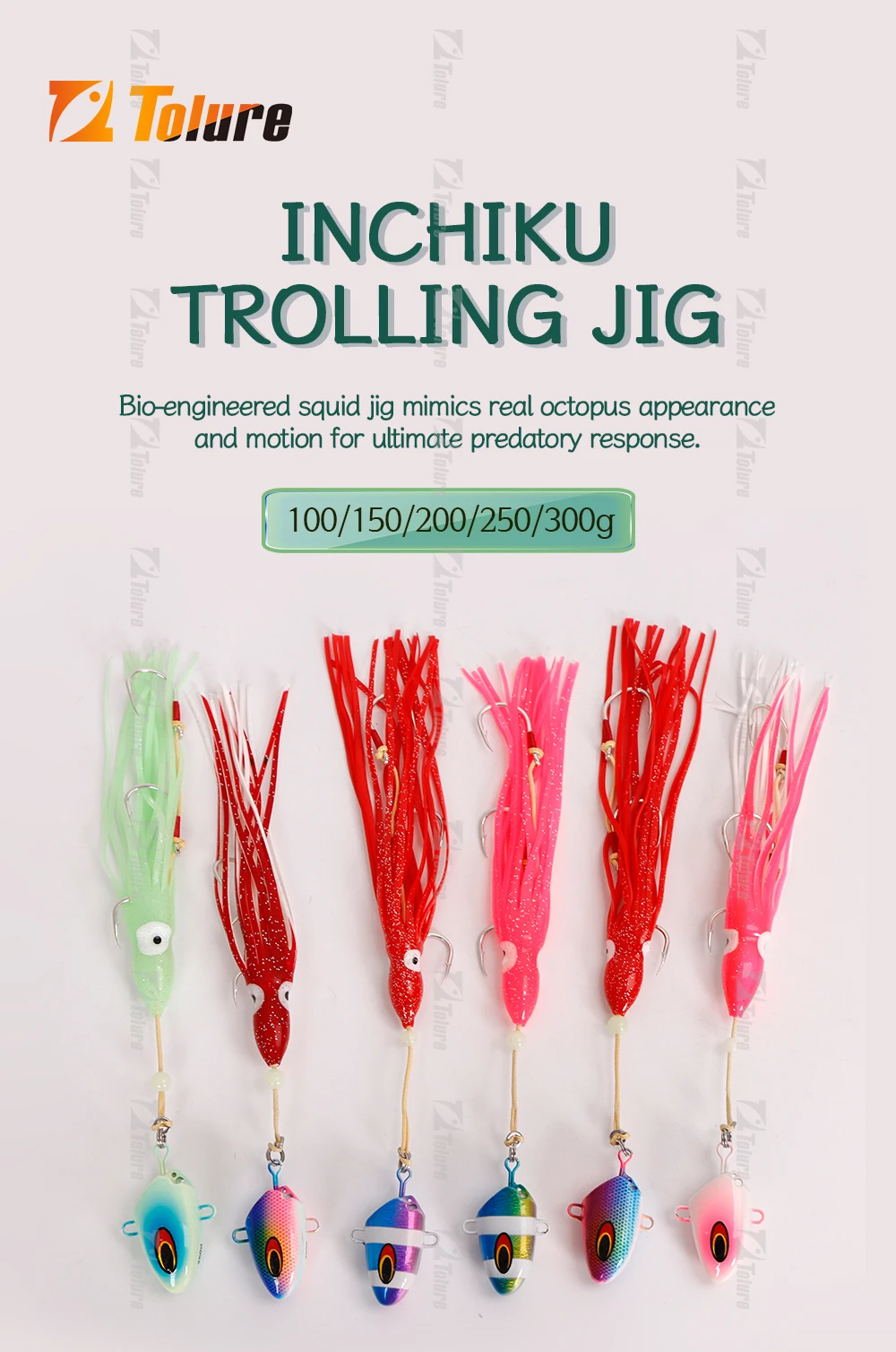 TOLU 100g150g200g250g300g Kabura Bullet Metal Jig Head Squid Assist Hooks Sinkin
