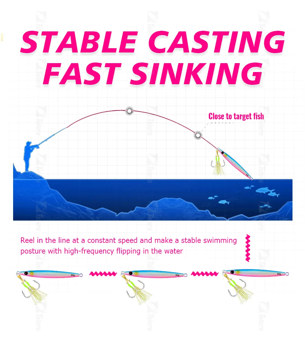 TOLU 2024 New 40g/60g/80g Fast Sinking Jigging Fishing Lure Laser Paper Coating
