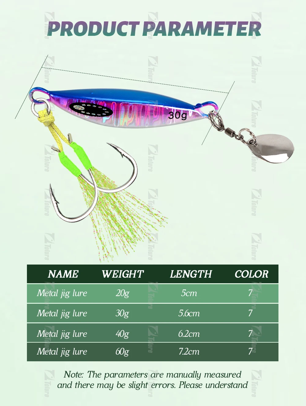 TOLU 2024 Spin Tail Metal Jig Fishing Lure 20g 30g 40g 60g Spinner Shad Metal Vi