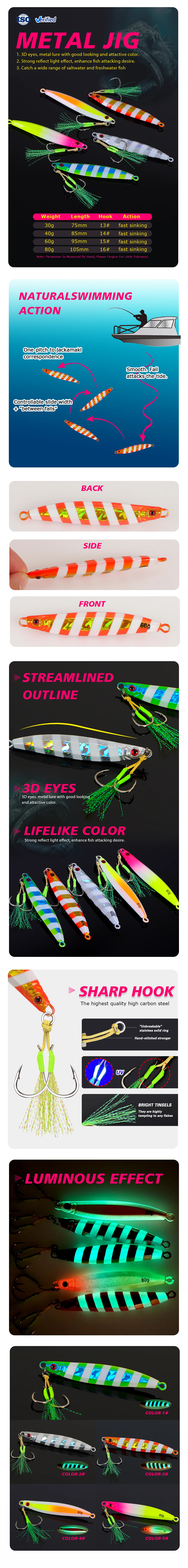 TOLU New 30g/40g/60g/80g Fast Sinking Jigging Fishing Lure Laser Paper Coating L