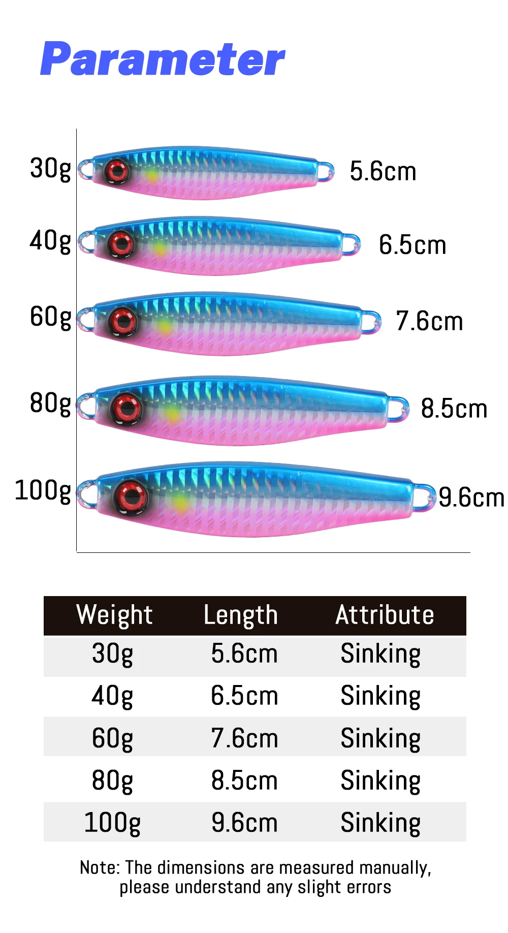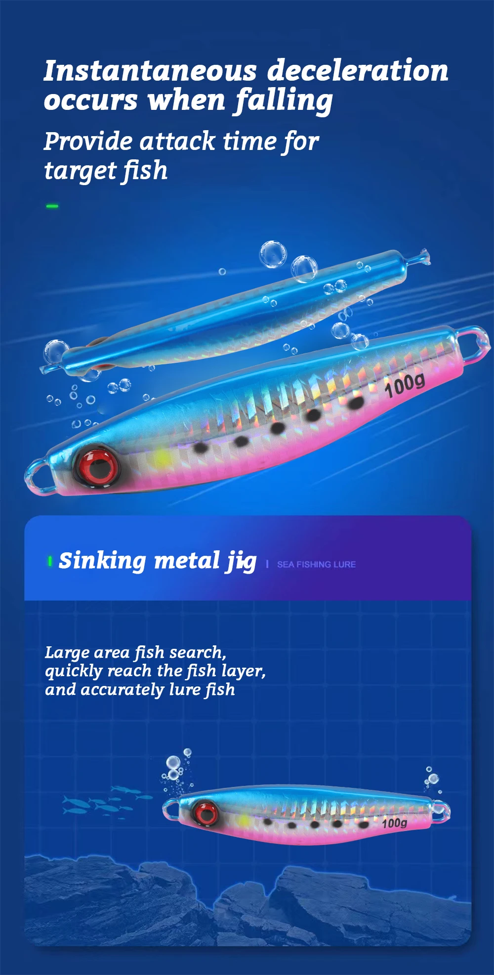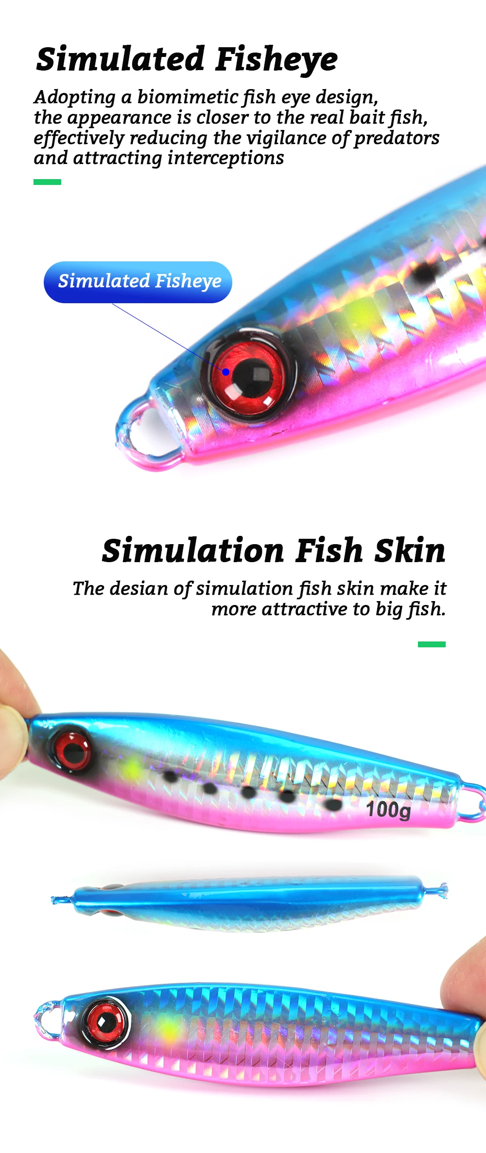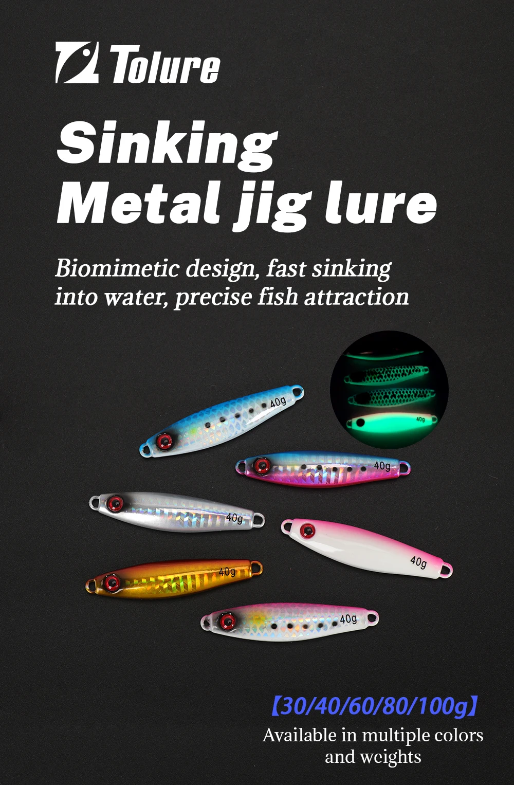 TOLU NEW 3D Eyes Fast Sinking Metal Jig Lure 30g40g60g80g100g Saltwater Shore Ca